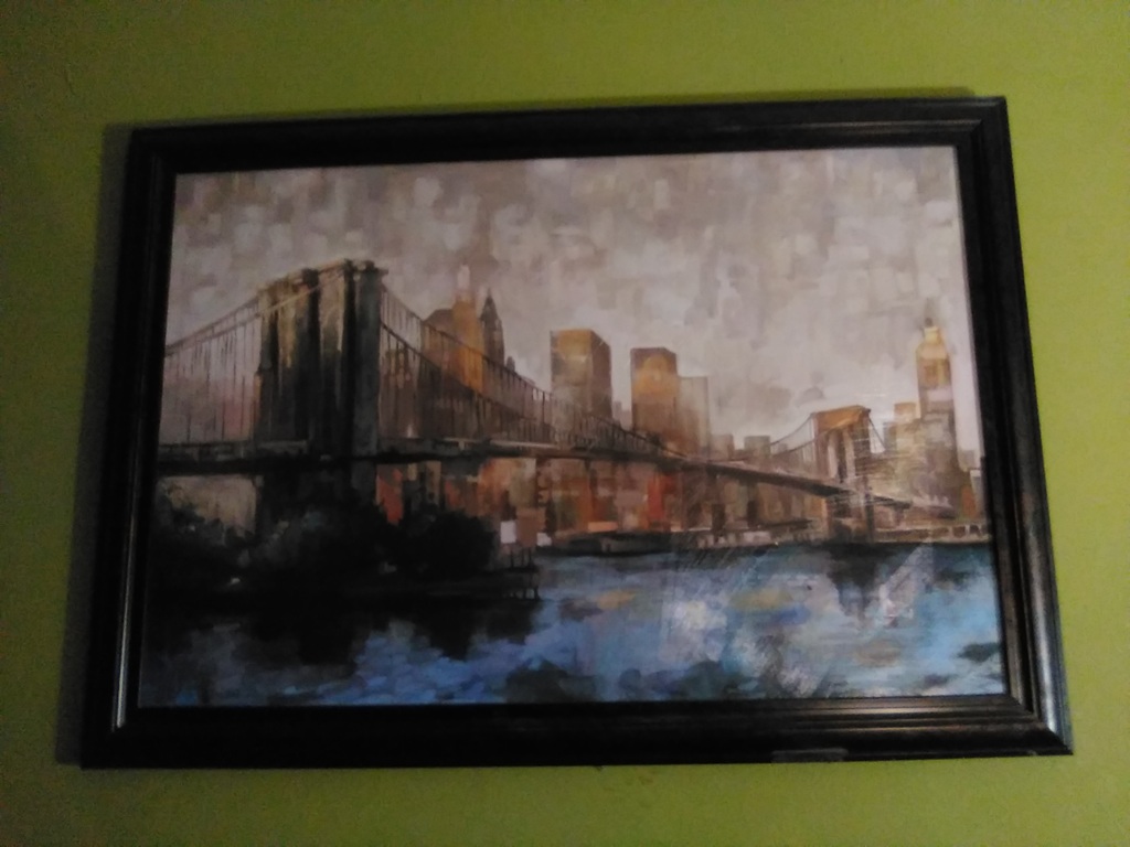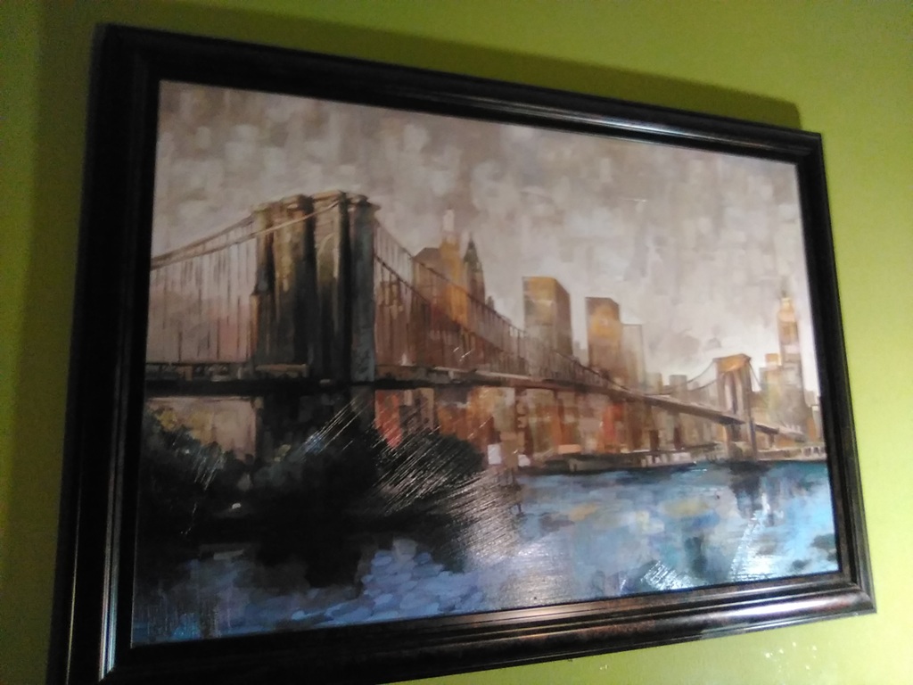 The first person to make a $5000 tax-deductible donation will receive a painting of the New York Twin Towers as shown in the three photographs below, (professionally packed) sent to donor's address via FedEx with 72 hours of receiving $5.000 donation by mail or online donation using PayPal. The painting is 40x30. The back of painting is covered. Painter's name is not visible maybe until the back cover is removed. Unknown if the New York Twin Towers painting is original or a copy. However the brush strokes are visible depending on the studio lighting. Painting is offered as is. For more information text 415-637-0376.